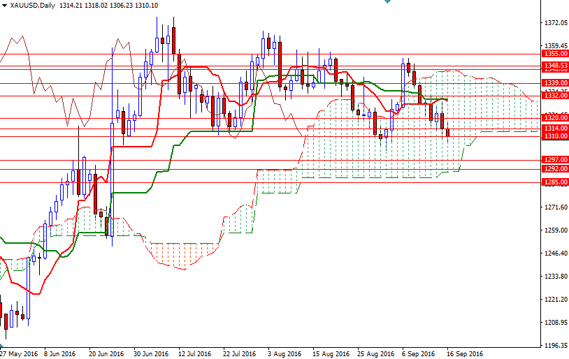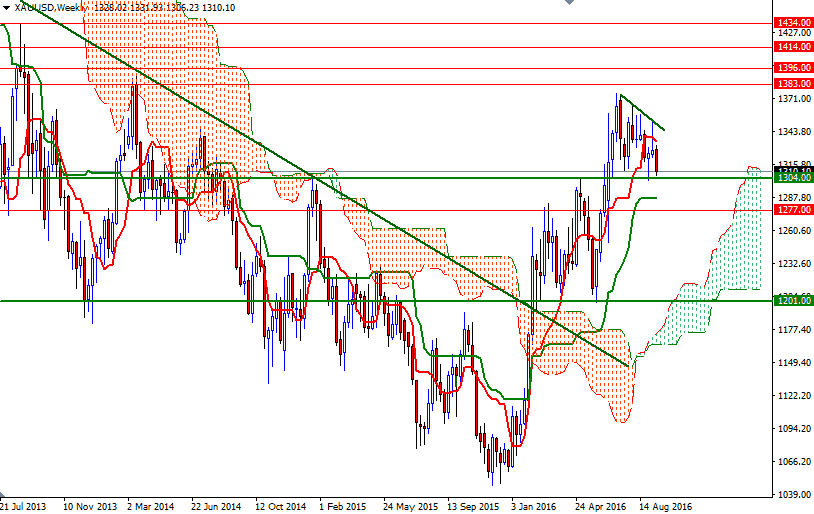 Gold ended the week down by 1.35% at $1310.10 an ounce, weighed down by a stronger dollar, weak physical demand in Asia and uncertainty surrounding Federal Reserve policy. The XAU/USD pair tried to climb above the $1332 level but the market found strong resistance in the vicinity. As a result, prices reversed and broke down below the $1320/19 support zone and tested the $1314 and $1310 levels as expected.