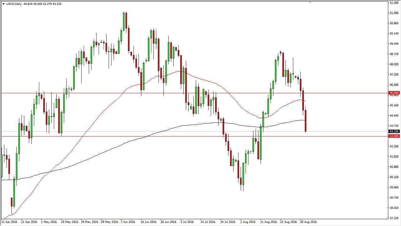 During the day on Thursday, the WTI grade of crude oil got absolutely pummeled yet again. We are approaching the $43 level, an area that could be supportive. However, I believe the given enough time we are selling off even if we do rally from here. This is a market that is dealing with the fact that demand simply isn’t there as I had anticipated previously. On top of that, it appears that the oversupply problem in crude oil will last through most of 2017, so a lot of the reason for the rally has just been undermined. With this, I believe short-term rallies offer selling opportunities just as a significant break below the aforementioned $43 handle will be.