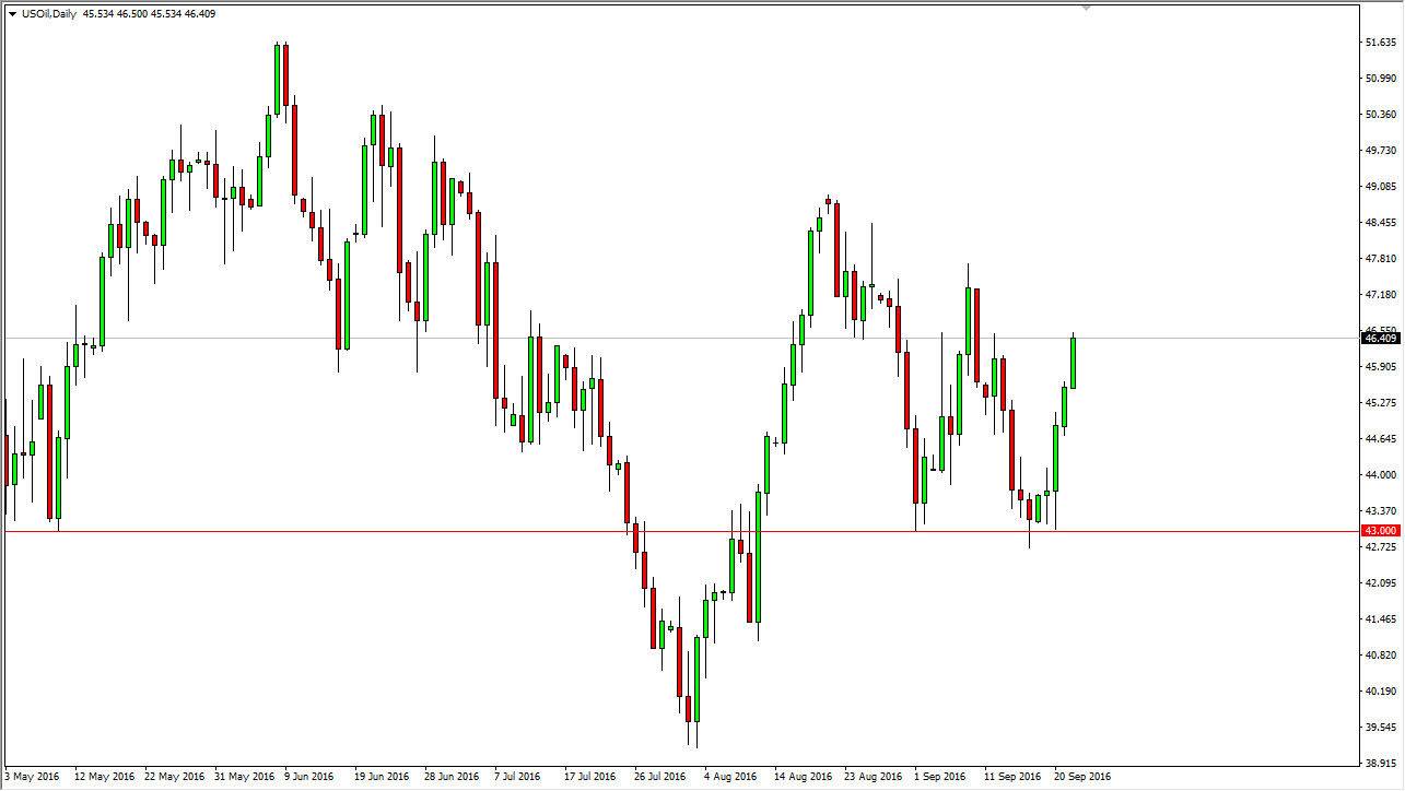 The WTI Crude Oil market broke higher during the course of the session on Thursday, as we continue to see bullish pressure enter this market. With this being the case, I think that we are getting a little bit “long in the tooth” when it comes to the move higher. With this, I think that it’s only a matter of time before the sellers get involved though, so having said that I think that it’s only matter of time before we get an exhaustive candle that we can take advantage of. With this, the market could very well fall the way down to the $43 level. I believe that there are massive amounts of resistance all the way to at least to the $49 level. I believe that sooner or later we will get the candle that I can search selling and therefore I will as the highs continue to get lower and lower.