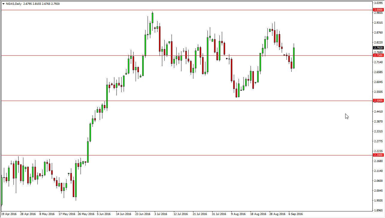 The natural gas markets also rose during the course of the day, slicing through the $2.75 level and more importantly the gap from the beginning of the week. However, we did pullback a little bit from there so it does suggest that perhaps we are going to find resistance in this general vicinity. Nonetheless, I believe that the $2.90 level is going to be massively resistive, and that of course is going to cause quite a bit of trouble. I believe the choppiness will continue, and quite frankly we are still waiting to see when we get the longer-term move. At this point we are still stuck in consolidation, and not much has changed truthfully. Most of the summer we have spent near the $2.75 level, which is just a little bit below where we are now. With this being the case, I continue to look at this is a short-term trader’s type of market, and as a result scalping back and forth is probably the best way to approach this market if you feel the need to trade.