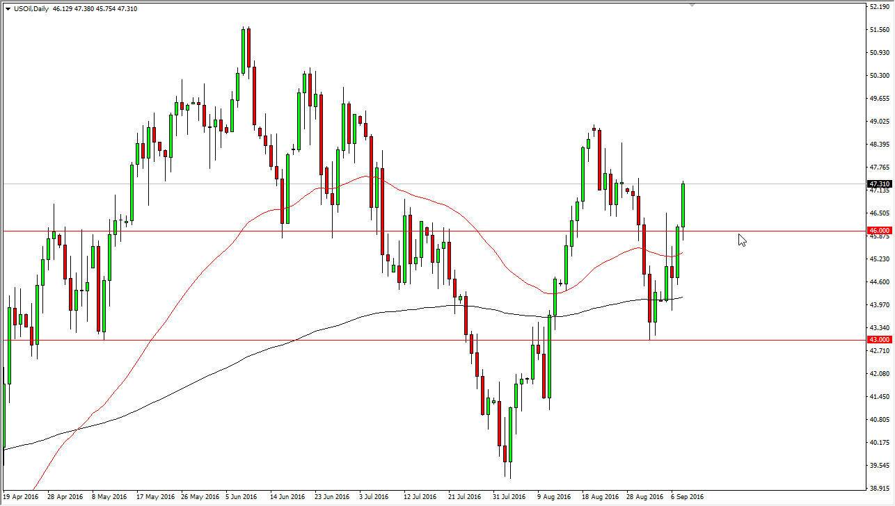The WTI True Oil market initially fell during the course of the session on Thursday, but found quite a bit of support just below the $46 level and the market shot higher. We are still below quite a bit of resistance though, so at this point in time I feel that any rally is going to have to deal with quite a bit of noise. Short-term pullbacks could be short-term buying opportunities unless of course we get back below the $46 level. Once we get below there, I would feel more than likely that the market would continue to consolidate in general between that level and the $43 level below. At this point in time, I believe that the one thing you can count on is quite a bit of confusion as we come back from the summer holiday.