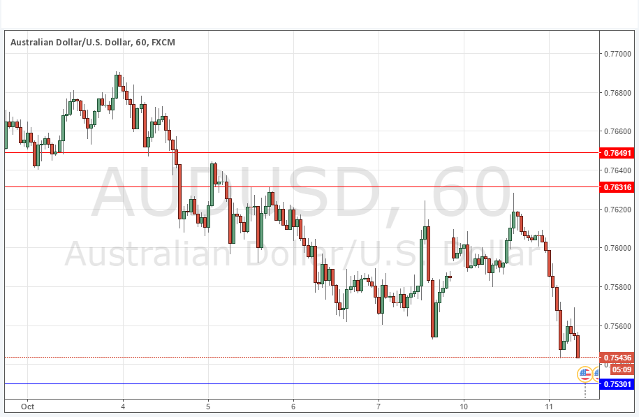 • Go long following some bullish price action on the H1 time frame immediately upon the next touch of 0.7530.