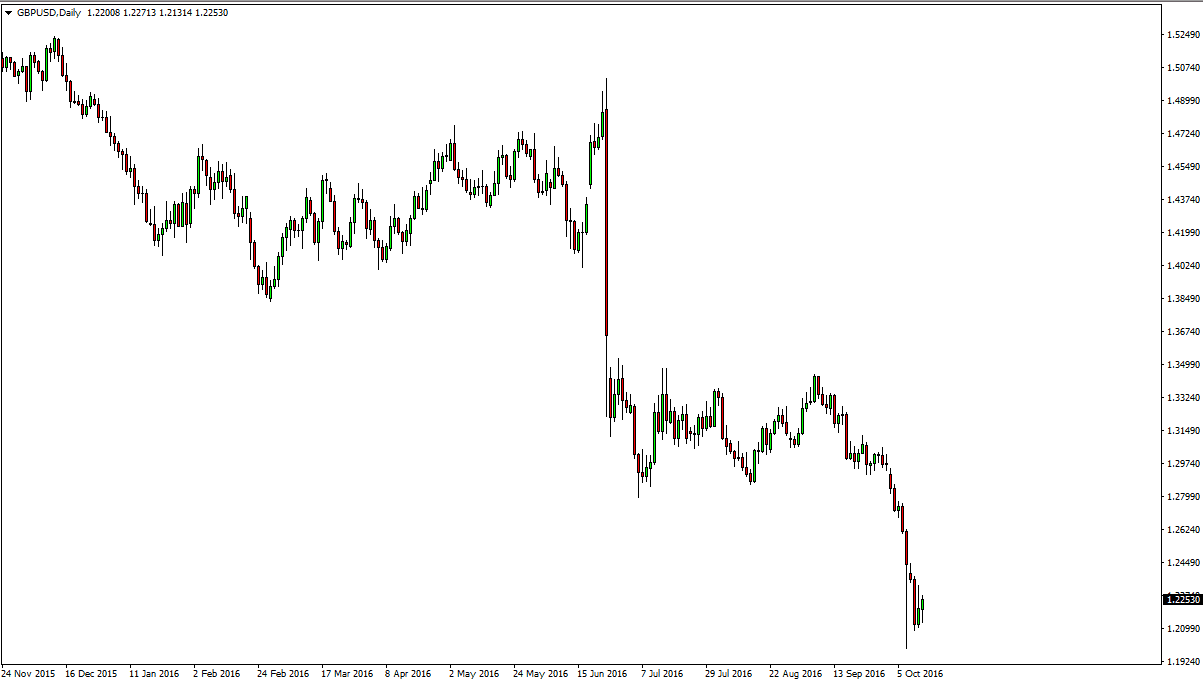 The British pound initially fell on Thursday but bounced enough to form a bit of a hammer as we continue to see buying pressure appear. The 1.20 level below should be supportive, as it is a large, round, psychologically significant number, and of course essentially where the flash crash from several sessions ago stopped. I believe that at this point in time it’s likely that the markets will try to conduct a little bit of a “relief rally”, but it is only a matter of time before the sellers return as this market is most certainly bearish. After all, we are still punishing the British pound for leaving the European Union, and course have broken through some pretty major support levels over the last several weeks.