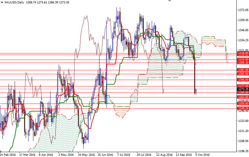 Gold prices ended Tuesday's session down 3.32%, their biggest decline since January 2015, after a breach of the key support level at $1300 triggered a sell-off. The strength in the dollar and a media report discussing possible ECB tapering scenarios also contributed further pressure on the market. The XAU/USD pair slumped to $1266.39 before recovering slightly to the $1273.35 level.