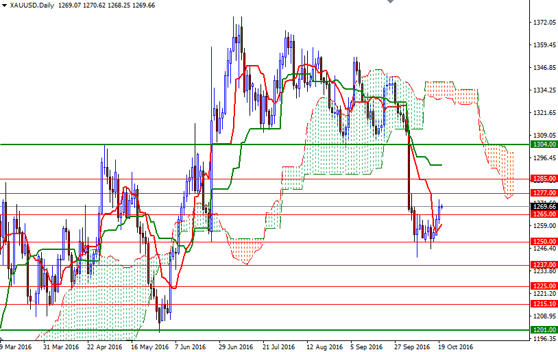 Gold settled up $6.75 at $1269.12 on Wednesday as a weaker dollar provided some support for the precious metal. The XAU/USD pair extended its gains and reached the $1270/69 area as expected after the $1265/3 resistance was broken. The market had been going back and forth in a tight range recently, so breaking out of this consolidation is a positive development.