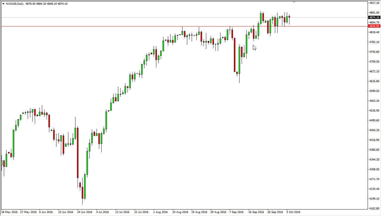The NASDAQ 100 initially fell during the course of the session on Thursday, but found support yet again at the 4840 handle. Because of this, we did up forming a bit of a hammer and that suggests that we are going to go higher, and that pullbacks will more than likely offer buying opportunities. I think that the market will then go to the 5000 handle, which is my longer-term target anyway. I don’t have any interest in selling the NASDAQ 100 because quite frankly it has been one of the better performers that I follow. The market has been fairly quiet over the last several sessions, because we have been consolidating. However, I feel that it is time to get going, and this announcement could be exactly what happens to move this market.