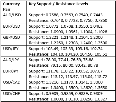 Key Support/Resistance Levels for Popular Pairs