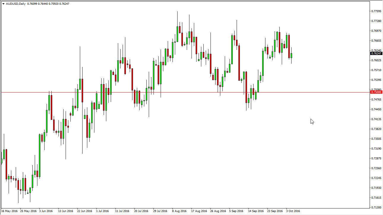 The Australian dollar went back and forth during the day on Wednesday, hovering around the 0.7625 levels. Ultimately, it looks as if the markets are continuing to go back and forth in what has been a rather reliable consolidation area over the last several sessions. Because of this, I don’t necessarily have any interest in buying or selling the Australian dollar at this moment in time, but I do recognize that we pullback from here, a very real possibility, it’s very likely that the market will find buyers below at the 0.75 handle.