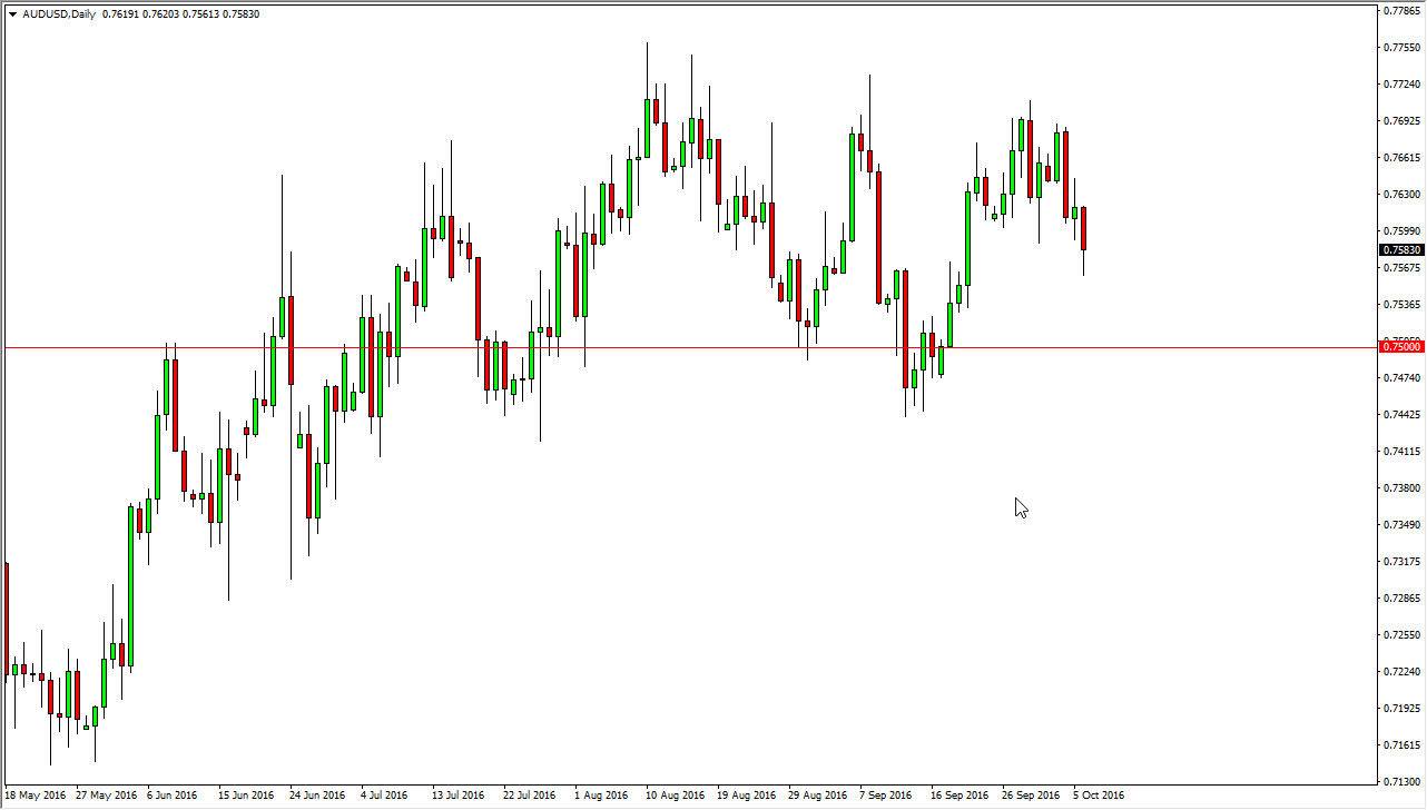 The AUD/USD pair fell significantly during the day but did get a little bit of a bounce at the lows during the Thursday session. I believe that this market is going to continue to grind a little bit lower though, and perhaps reach down to the 0.75 level below which is a much more significant level than where we are at right now. I believe that short-term rallies will more than likely offer selling opportunities, and on signs of exhaustion, I am more than willing to start selling again, and I believe there is simply far too much in the way of noise above. On top of that, the gold markets of been melting down, so it’s hard to imagine that the Australian dollars can again any significant bullishness at this point.