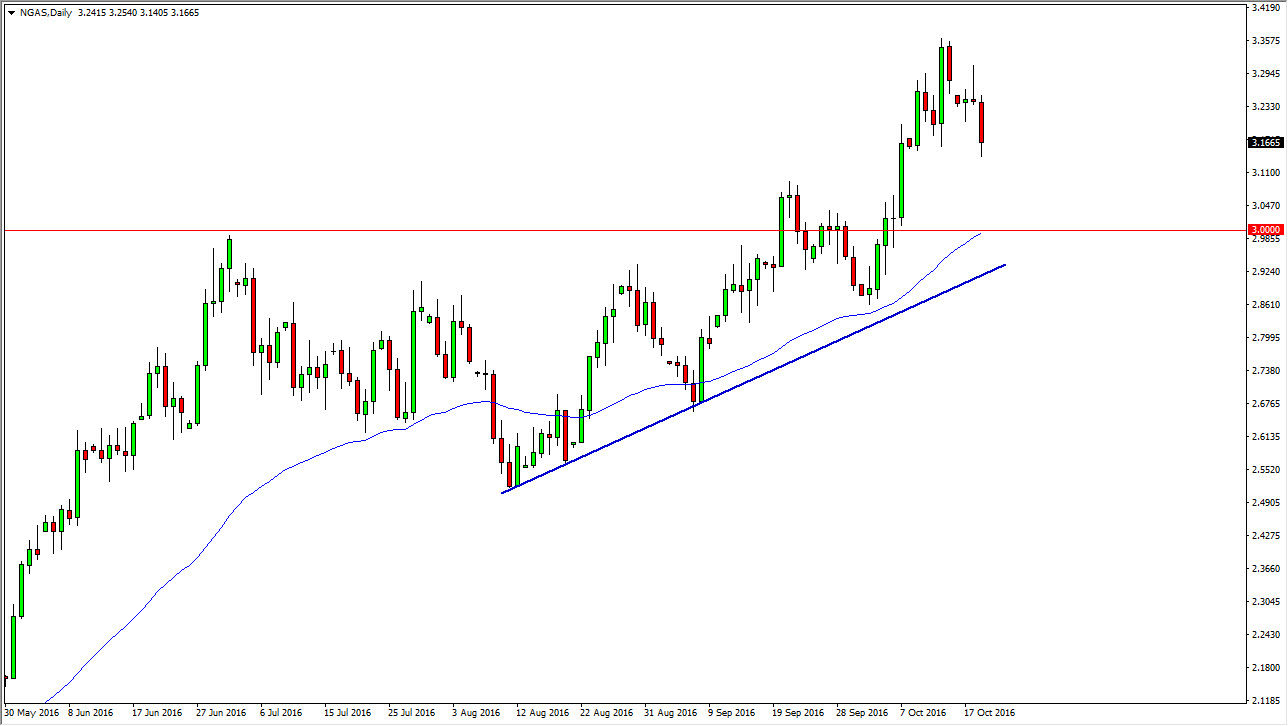 The natural gas markets broke down during the course of the session on Wednesday, as we broke below the bottom of the shooting star from the Tuesday session. With this being the case, looks as if the $3.15 level offered enough support to continue to list the market. However, it’s likely that if we break down below the bottom of the candle for the day on Wednesday we will probably test the more serious support at the $3 handle, which the 50-day exponential moving average is now testing, and of course has a significant amount of psychological importance.