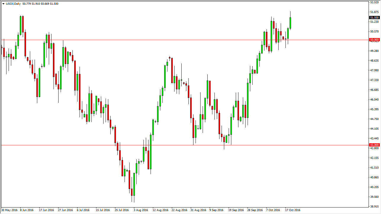 The WTI Crude Oil markets rose during the course of the day on Wednesday, breaking out to a fresh new high at one point. However, we did get back some of the gains so it does suggest that it is going to be a marketplace that should find buyers below, so pullbacks might be needed in order to build up the momentum to continue to go higher. Ultimately, I believe that the $49 level below continues to be the “floor” in this market, so I don’t really have any interest in selling even if we do pullback. Ultimately, this is a market that I think goes towards the $52.50 level above, and then eventually the $55 level above there. Ultimately, this is a market that I think the buyers will continue to run towards in the short-term.