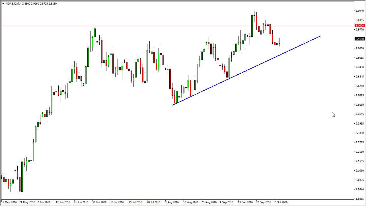 The natural gas markets initially fell during the course of the session on Tuesday, but bounced enough to form a green candle. It looks as if the market is trying to reach towards the $3 level yet again, where I would expect to see a significant amount of resistance. If we can break above there though, I feel that the market would then reach higher, perhaps to be 3.10 level above, and then even higher to the $3.40 level after that. On the other hand, I do have an uptrend line that you have to pay attention to on this chart.