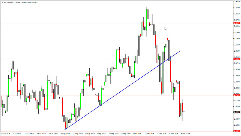 Natural gas markets have been volatile again during the Friday session, but have done something that was interesting in the sense that they have formed a hammer. I think this means that we will probably have some type of bounce from here but I see a massive resistance barrier that starts at the $2.75 level above, and extends all the way to the $2.85 level. Because of this, I think it is prudent to simply wait for some type of rally that show signs of exhaustion that you can start selling. I think that it is difficult to imagine going long of this market at the moment, at least not until we break above the $2.85 level, and even then I would be concerned about the $3 handle. The supply of natural gas is enormous, and quite frankly will be for the foreseeable future. Because of this, I am not interested in buying this contract and I simply wait for opportunities to sell, much like gold markets were in the 1980s.