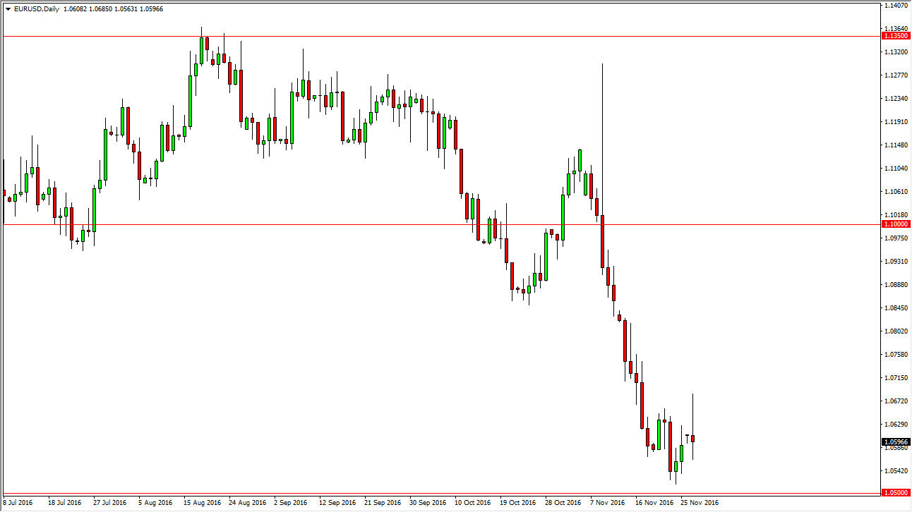 The EUR/USD pair initially tried to rally at the open on Monday but found quite a bit of resistance at the 1.07 level above. We found enough resistance to turn things back around to form a massive shooting star, and with that being the case the market looks as if it is trying to grind down to the 1.05 level below. If we can break below there, I feel that the market continues to go much lower, perhaps reaching towards the 1.00 level after that. I have no interest in buying this market, and I believe that the idea of the Federal Reserve raising interest rates next month will continue to weigh upon this market as well as the Italian referendum that’s coming. Have no interest in trying to go against the massive downward pressure that we see here.