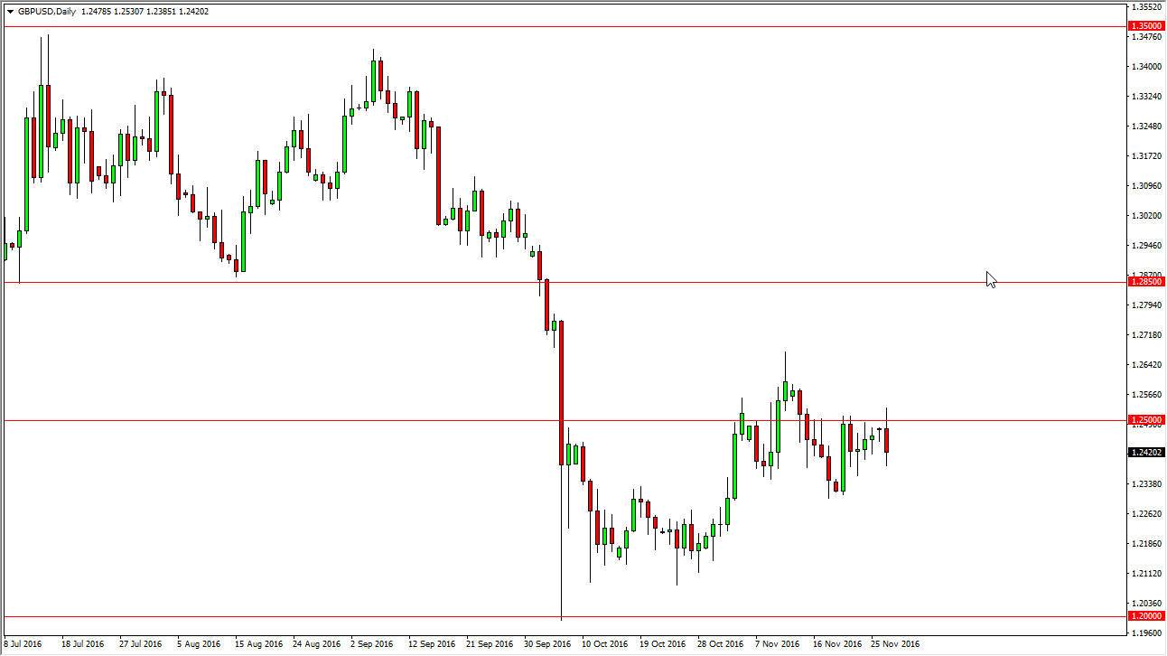 The British pound initially tried to rally during the Monday session but found out the 1.25 level above continues to order quite a bit of resistance into the market. I believe that this market continues to go back and forth and simply grind overall, and because of this the market would continue to go back and forth and eventually find sellers to pushes market to the 1.2350 level, and then eventually the 1.20 level after that. I’ve noticed in buying; the British Pound continues to struggle overall after the exit vote.