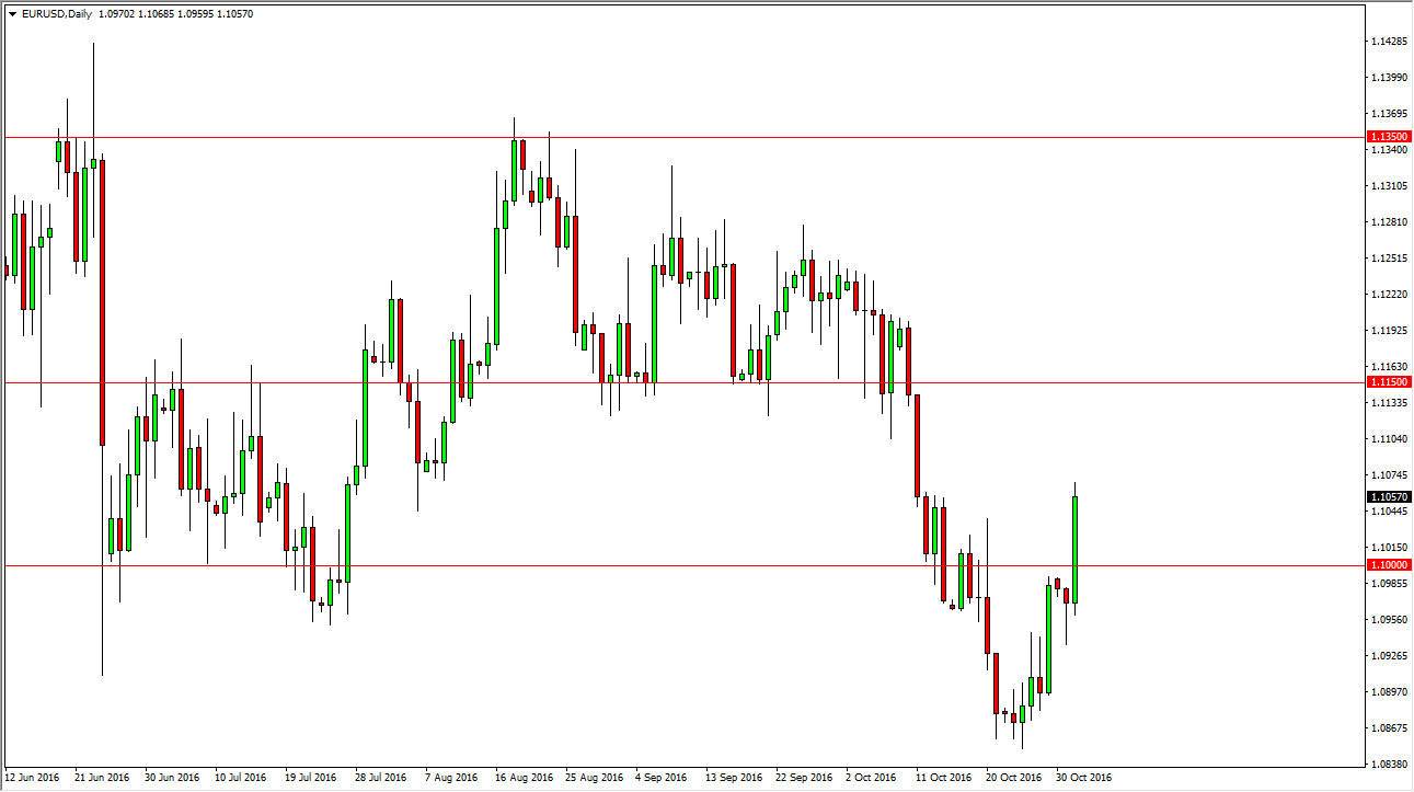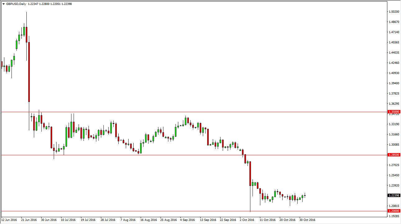 The Euro broke higher during the day on Tuesday, clearing the top of the hammer from the Monday session. With that being the case, it looks as if the market is trying to go higher, and it’s very possible we may bounce all the way to the 1.1150 level. An exhaustive candle above should be a nice selling opportunity, as the resistance above is massive. With this being the case, I am simply waiting to see exhaustion as it could continue the longer-term downtrend. Ultimately, this is a market that is probably reacting to the presidential polls in America more than anything else, and quite frankly this should be a “knee-jerk reaction” that we can take advantage of at higher levels. I would be very surprised we didn’t turn right back around and start falling soon.
