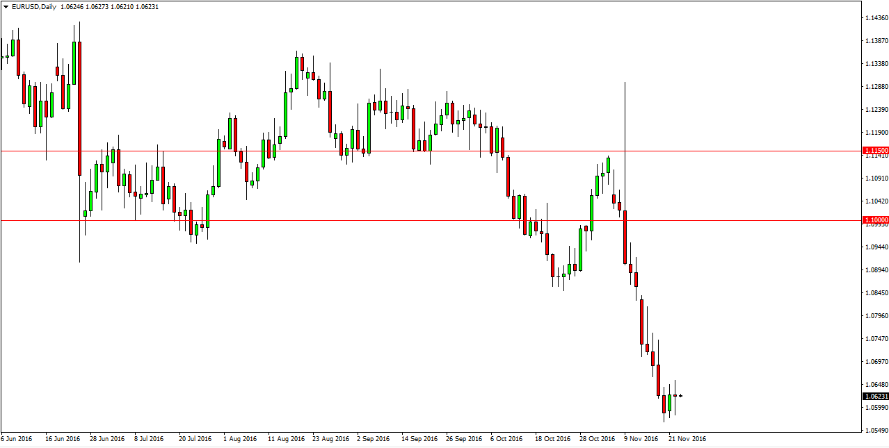I believe that exhaustive candles on short-term rallies are the way to go going forward, and with the Thanksgiving holiday coming tomorrow, we will have a bit of a lack of quiddity when it comes to the marketplace. Because of this, I expect the market to be fairly muted over the next couple of days as we try to figure out where to go next. Once we get through the Thanksgiving holiday, things tend to calm down a bit and therefore most of the major moves may have already happened.