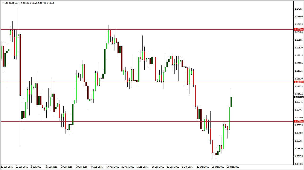 The EUR/USD pair initially surged higher during the day on Wednesday, but gave back some of the gains as we reach towards the 1.1150 resistance barrier. The fact that we pulled back suggests that we are going to continue the longer-term downtrend, as this market has only rallied due to concerns about the US presidential election. Because of this, it’s very likely that the market has been overdone to the upside, and the longer-term downtrend should continue. Because of this, I believe that we will start dropping towards the 1.10 level below. That is an area that was massively resistive, and now should be massively supportive. However, I believe that we could continue to drive to the downside, and as a result I believe that the problems in the European Union far outweigh any uncertainty when it comes to the presidential election in the United States.