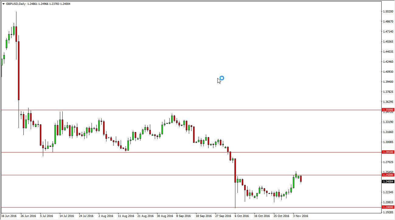The British pound fell significantly during the day on Monday, as the 1.25 level has offered quite a bit of resistance yet again. The fact that we did up forming this negative candle suggests that the market should continue to drop from here. The 1.20 level below is essentially the “hard floor” at this point, and because of this it’s very likely that the market will continue to bounce off that area and attack it again and again as we have significant pressure on the British pound in general. With the negativity of the exit boatswain upon the British pound, it’s likely that the market will offer selling opportunities every time we rally as it begins to show “value” in the US dollars general.