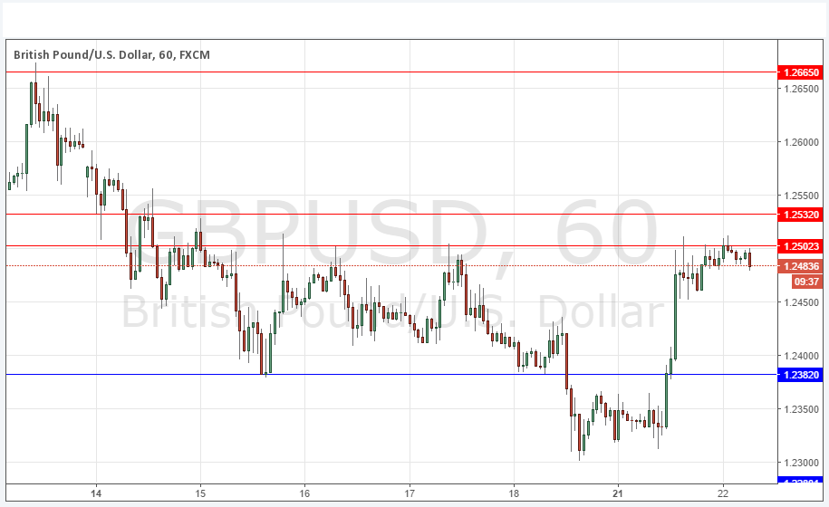 Yesterday’s signals produced a short trade following the bearish pin candle rejecting the resistance level identified at 1.2502 which was reached shortly after yesterday’s “flash rise”.