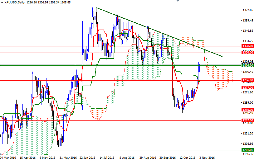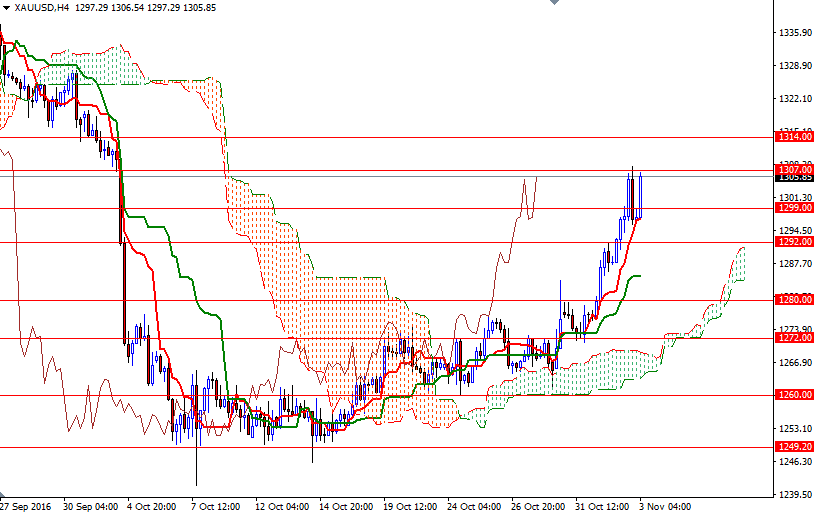 Apparently, concerns over the outcome of the U.S. election is dominating the headlines at the moment and overshadowing the fact that the U.S. central bank is moving closer to raising rates. The precious metal is trading at $1305.85, higher than the opening price of $1296.80. Although the bullishness continued, the market found strong resistance in the $1307/4 area as expected. This is the key level for bulls to capture today if they intend to push prices higher and reach the $1314 level.