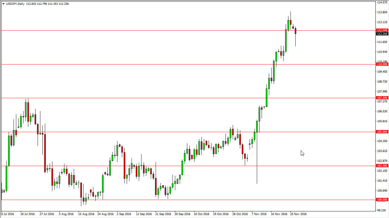 The US dollar fell initially during the day on Monday, and then turned back around to form a hammer. The hammer of course is a very bullish sign, so I believe it’s only a matter time before the buyers get involved. I believe ultimately though that we need a pullback in order to find value below and build up enough momentum to finally break out to the upside. I prefer to see some type of value play present itself though, because we are overextended so I would love a move down to the 107.50 level, but would settle on a move down to the 110 handle. I have no interest in selling regardless what happens next.