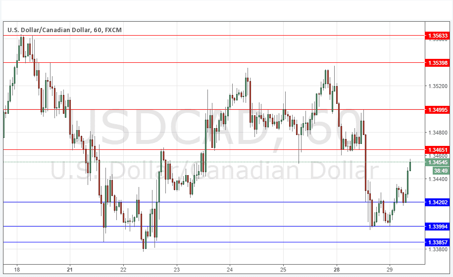 * Go short after the next bearish price action rejection following a first touch of 1.3465, 1.3500 or 1.3540.