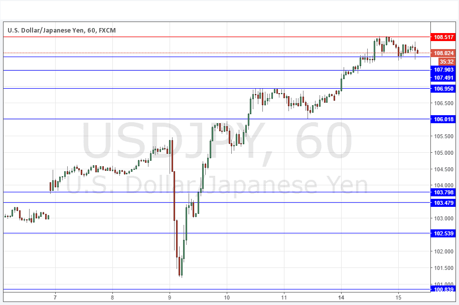 Yesterday’s signals were not triggered as the bearish price action took place a little higher than the resistance level identified at 108.42.