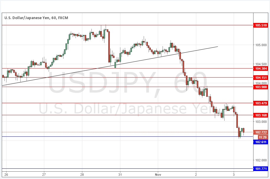 Yesterday’s signals might have produced a losing short trade following the bullish pin bar rejection of the support level identified at 103.16.