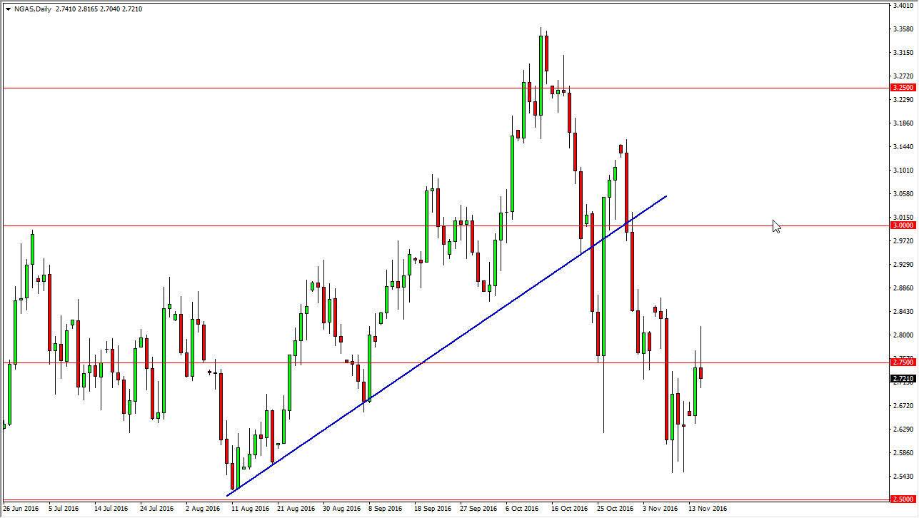 The natural gas markets initially tried to rally during the course of the session on Tuesday but found the area above the $2.75 level to be far too resistive. Because of this, the market ended up forming a massive shooting star and it looks as if we are going to drop from here and reach towards the $2.55 level. At this point, I believe that the $2.50 level below is the next major support area, and it might take several attempts to break down below there. However, the market has been selling off with quite a bit of ferocity lately, so I think it makes a lot of sense that we continue to see sellers into this market every time we try to rally on short-term charts.