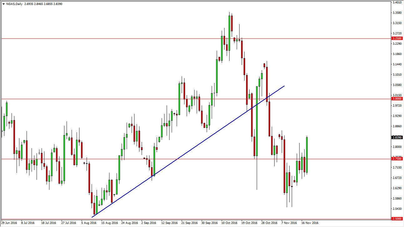 The natural gas markets broke to the upside during the day on Friday as well, reaching all the way towards the 2.85 handle. This is a market that has been very bearish over the last couple of months, so this impulsive candle is impressive, but quite frankly I think there’s more than enough resistance above to keep this market from going higher. I want to see an exhaustive candle in order to take advantage of selling opportunities, as I believe the market needs to reach towards the $2.55 level again. In fact, I don’t really have any situation in which I’m willing to buy the natural gas markets as I know how oversupplied the market is at the moment. Given enough time, I believe that the sellers will return again and again, and although this will be a choppy move it certainly will have quite a bit of negativity connected with it.