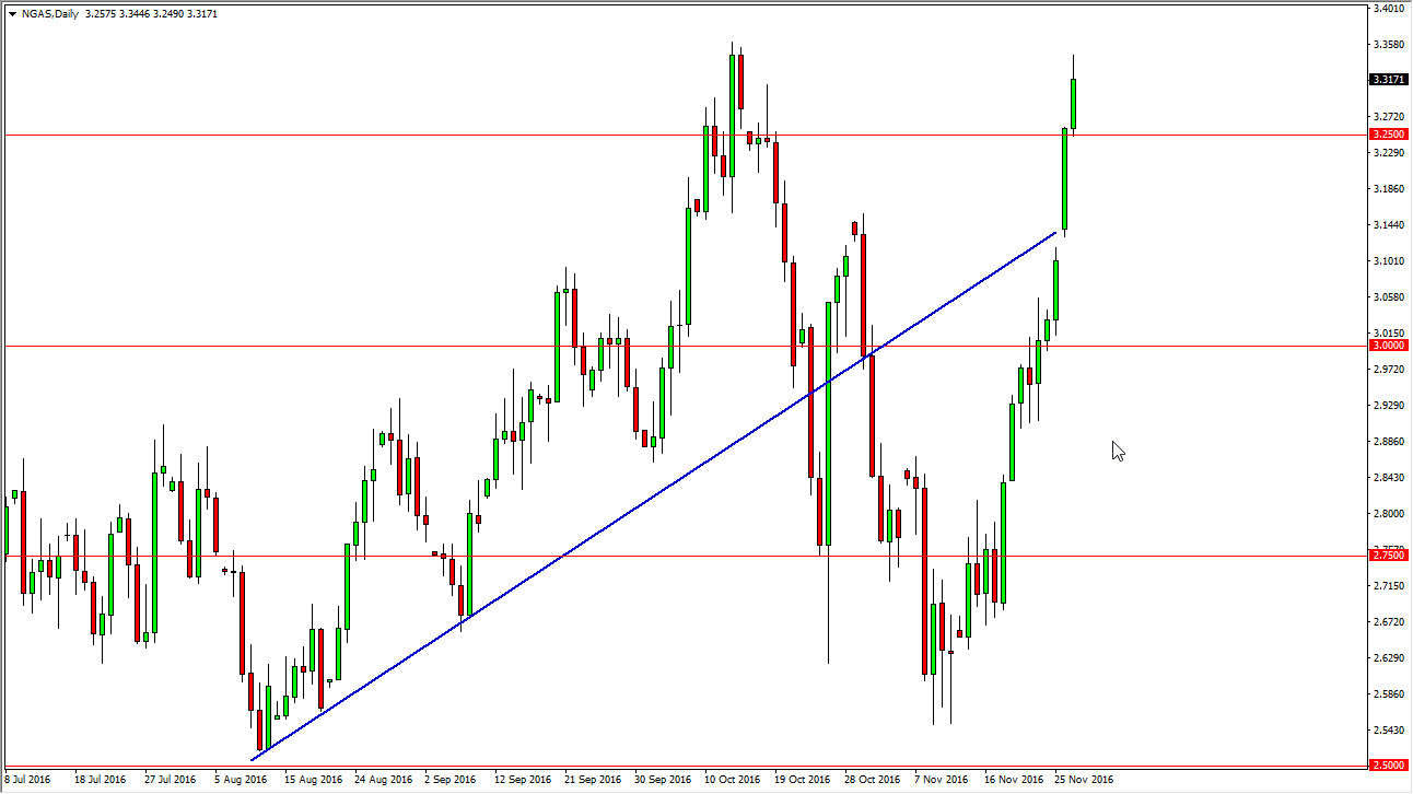 The natural gas markets rallied after initially gapping higher on Monday. In fact, the natural gas markets have absolutely exploded to the upside. However, this is a market that is far too overextended, so it makes quite a bit of sense that we would get a pullback. I’m not willing to sell this anymore, although I do recognize that the longer-term issue still playing the natural gas markets, as there is far too much in the way of supply. The colder weather in the northeastern part of the United States of course adds quite a bit of bullish pressure to this market, but ultimately even with all of that bullish pressure, it doesn’t do much to wipe out the oversupply.