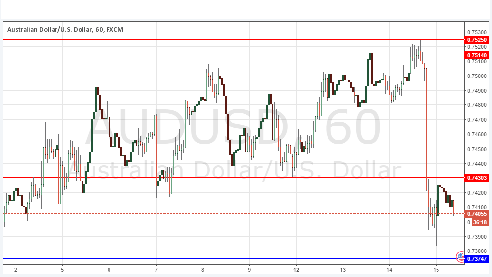 The support level of 0.7430 was cleanly broken and looks to have flipped to become likely resistance.