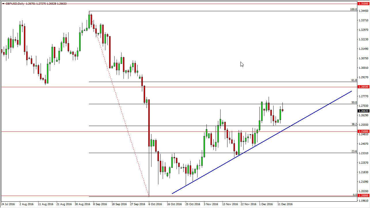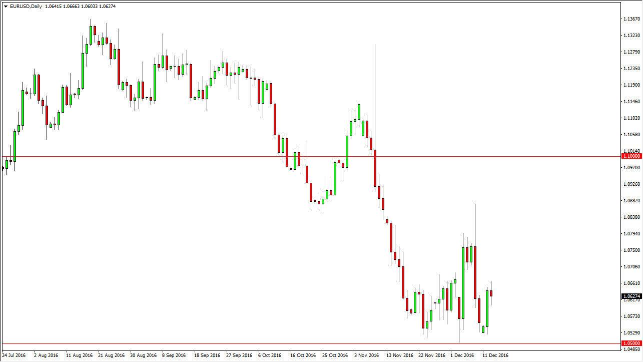 The EUR/USD pair went back and forth on Tuesday, eventually forming a relatively neutral candle. Because of this, I don’t have any real desire to trade this market until we break out of this range. If we break down below the bottom of the candle, I think we will reach towards the 1.05 level again. That is an area that should be massive support yet again, but I think given enough time we will break down below there and reach towards the parity level. Alternately, if we break above the top of the candle I feel that we will reach towards the 1.0750 level above, and then perhaps show exhaustion there that we can start selling as well. I have absolutely no interest in buying this pair as the Federal Reserve looks set to raise interest rates, and of course the ECB has recently just extended quantitative easing by 9 months.