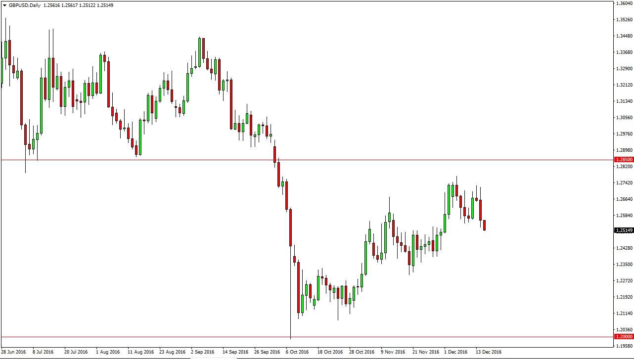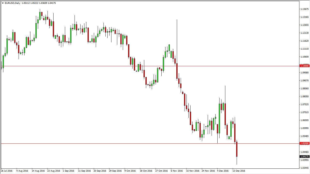 The EUR fell rather rapidly during the day on Wednesday as the Federal Reserve announced yet another rate hike. However, what’s more important is that it seems as if the Federal Reserve is going to have several rate hikes, while the ECB has recently just extended quantitative easing. Because of this, I believe that the EUR will continue to fall over all, and I am looking to sell. As we rolled into Thursday, the pair did a break below the 1.05 handle. At this point in time, I believe this only short-term rallies will be the way to go as the EUR continues to soften. I have no interest in buying this pair, and at this point I still expect to see parity before it’s all said and done.