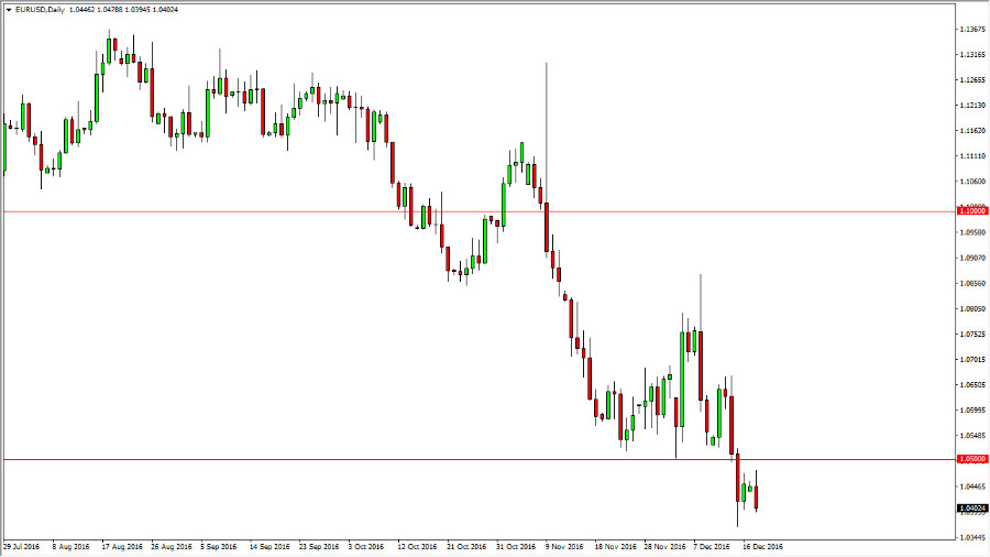 The EUR/USD pair initially tried to rally during the session on Monday, but as you can see the 1.05 level offered quite a bit of resistance. The resistance of course is a selling opportunity, and with this I think we will continue to see the market grind its way to the downside. I believe that we will reach towards the parity level over the longer term, with the European Central Bank extending quantitative easing being a major reason. The US dollar continues to be one of the strongest currencies in the world, and because of this I don’t see any reason for the Euro to suddenly pick up a lot of strength. With this, I remain very negative but I realize it may be a series of short-term selling opportunities that present themselves.