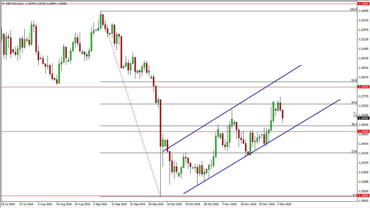 The British pound fell on Wednesday, as we are starting to see a significant amount of “pushback” at the 50% Fibonacci retracement level. I also recognize that the 1.25 level below is very important, and of course we have the previous uptrend line that could come into play as well. So, what I think is that we need to go back and forth from time to time, but eventually we will get sellers that interest this market as the longer-term downtrend has been so ensconced. A break down below the 1.25 level since this market much lower, and I think it happens given enough time. Even if we rally from here I recognize of the 1.2850 level above is massively resistive as it was previously so supportive. In fact, I feel that’s the “ceiling” in this market. Because of this, I am only looking for selling opportunities, and as a result I think that either exhaustion or further bearish pressure is well need to see in order to continue to buy the US dollar. After all, the US dollar has been the strongest currency in the world.