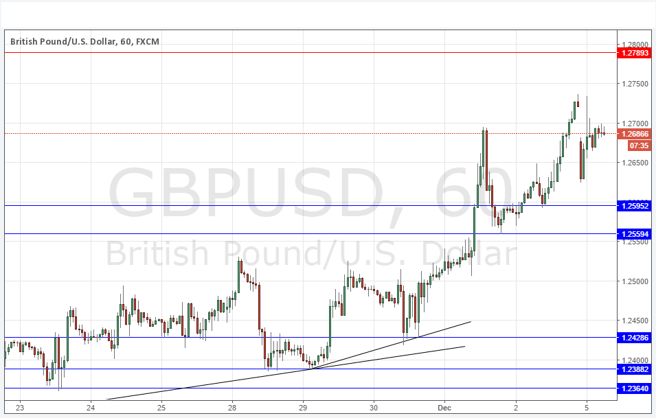 However yesterday we had the Italian referendum result which has knocked the Euro down and created a new crisis for the Eurozone due to some problems affecting a few Italian banks. This has also had the effect of bringing the Pound down. However, I see the price likely to recover once it reaches the nearest key support level of 1.2595.