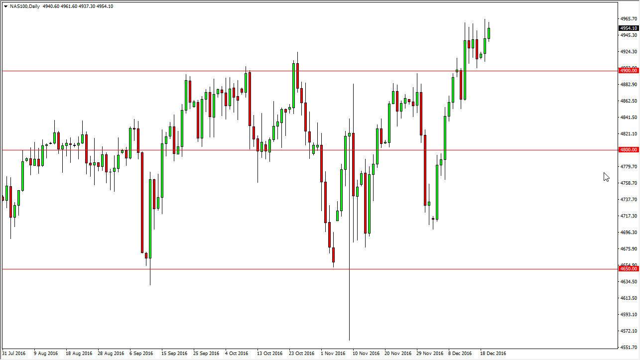 The S&P 500 rallied on Tuesday, as we continue to see bullish pressure in general, but it seems as if we are going to take a bit of a breather at this point. It’s not a huge surprise, as we are approaching the holidays which of course will sap most of the liquidity from this market. A pullback from here should see plenty of support at the 2250 handle below, and even if we broke below there I think that there is more than enough bullish pressure the 2200 level to keep the uptrend intact. Ultimately, I think we break above the 2300 level, and continue to reach much higher. The US indices continue to be the strongest in the world, and because of this, I have no interest in shorting.