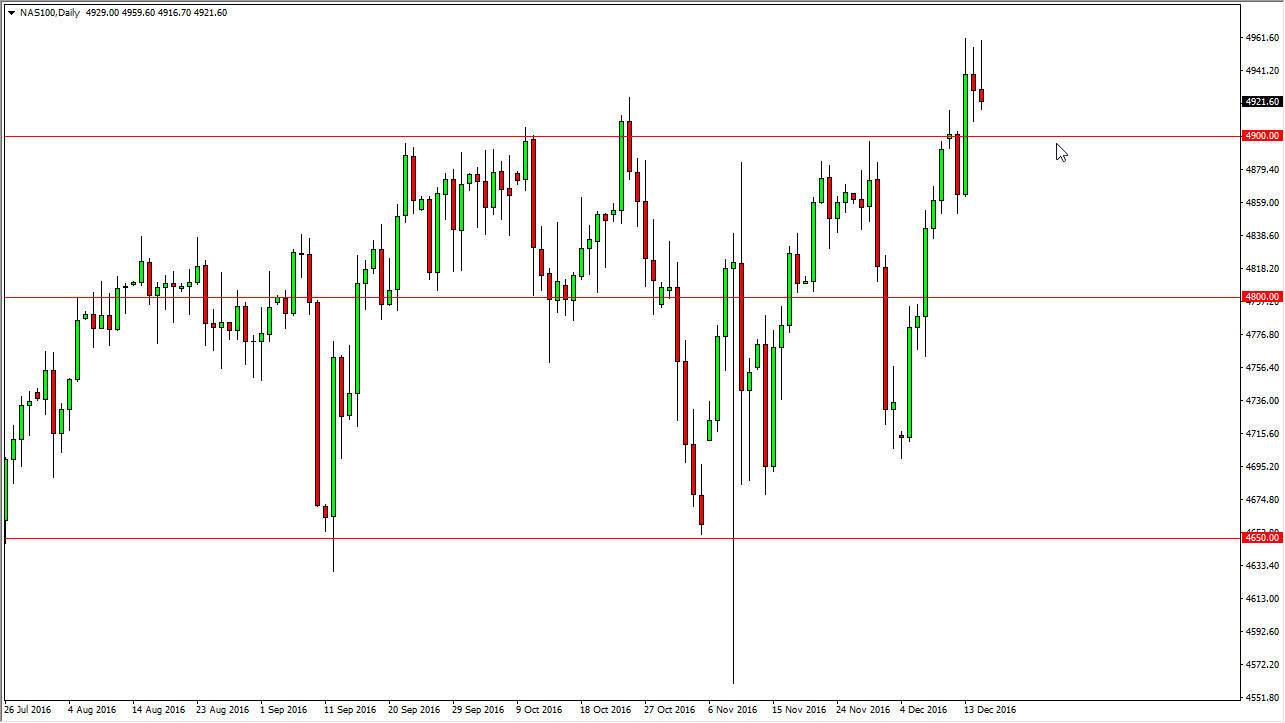 The NASDAQ 100 initially rallied on Thursday but turned around to form a bit of a shooting star. However, I see quite a bit of support just below at the previously resistive 4900 level. I think if we can find a supportive candle in this area it’s time to start taking advantage of what should be market participants trying to get involved in a market that they missed the breakout on. I believe that we will reach towards the 5000 level given enough time, and perhaps even higher than that. However, on the first to admit that the 5000 level will be significant from a psychological standpoint, and that means that the market will probably have to build up quite a bit of momentum to finally break out. I think that the writing is on the wall so to speak, and with that there’s no way to sell this market. It would take some type of serious break down and change of attitude overall in order to see this market start falling with any significance. Because of this, this is one of my favorite markets to be involved in and I will continue to buy.