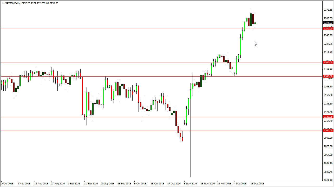 The S&P 500 found a bit of volatility during the session on Thursday, as we continue to hover above the 2250 handle. I think this area will act as a bit of a floor going forward, and although the candle looks a bit negative, even if we broke down below this level I would not be interested in selling. I think that the market has plenty of support below, extending all the way down to at least the 2200 level. Because of this, I am simply waiting for an impulsive positive candle, or some type of supportive candle after a pullback in order to take advantage of value. I believe the S&P 500 still has quite a way to go to the upside.