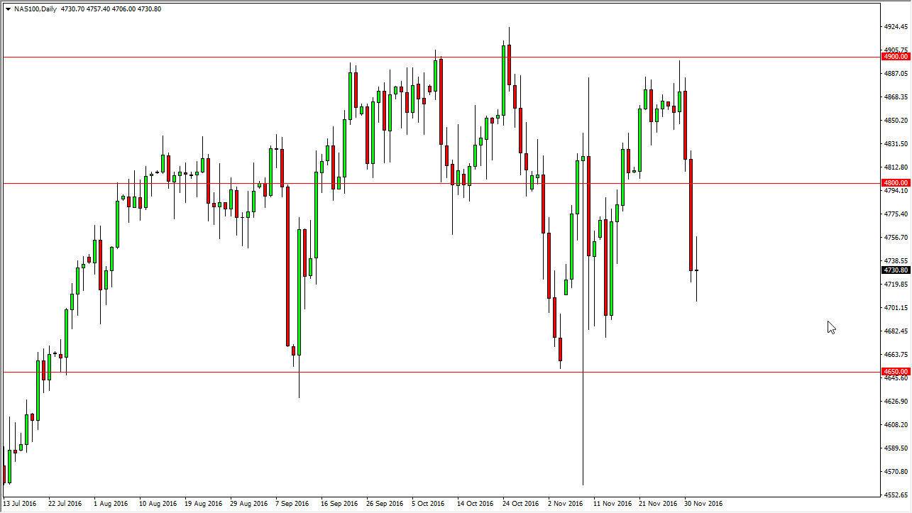 The NASDAQ 100 and a choppy session as well, essentially ending up all but unchanged. I think if we can break the top of the candle, then the market will rebound and reach towards the 4800 level. A break down below the bottom of this candle will more than likely be a retest of the 4700 level, and then possibly even the 4650 level. This is a bit of a laggard when it comes to the US indices at the moment, so I’m not really holding my breath for a massive bullish move. Because of this, I’m actually on the sidelines when it comes to the NASDAQ 100 at the moment, as I believe that the S&P 500 and the Dow Jones 30 will both continue to outperform this index due to its reliance on foreign sales. Nonetheless, I have zero interest whatsoever in selling this market.