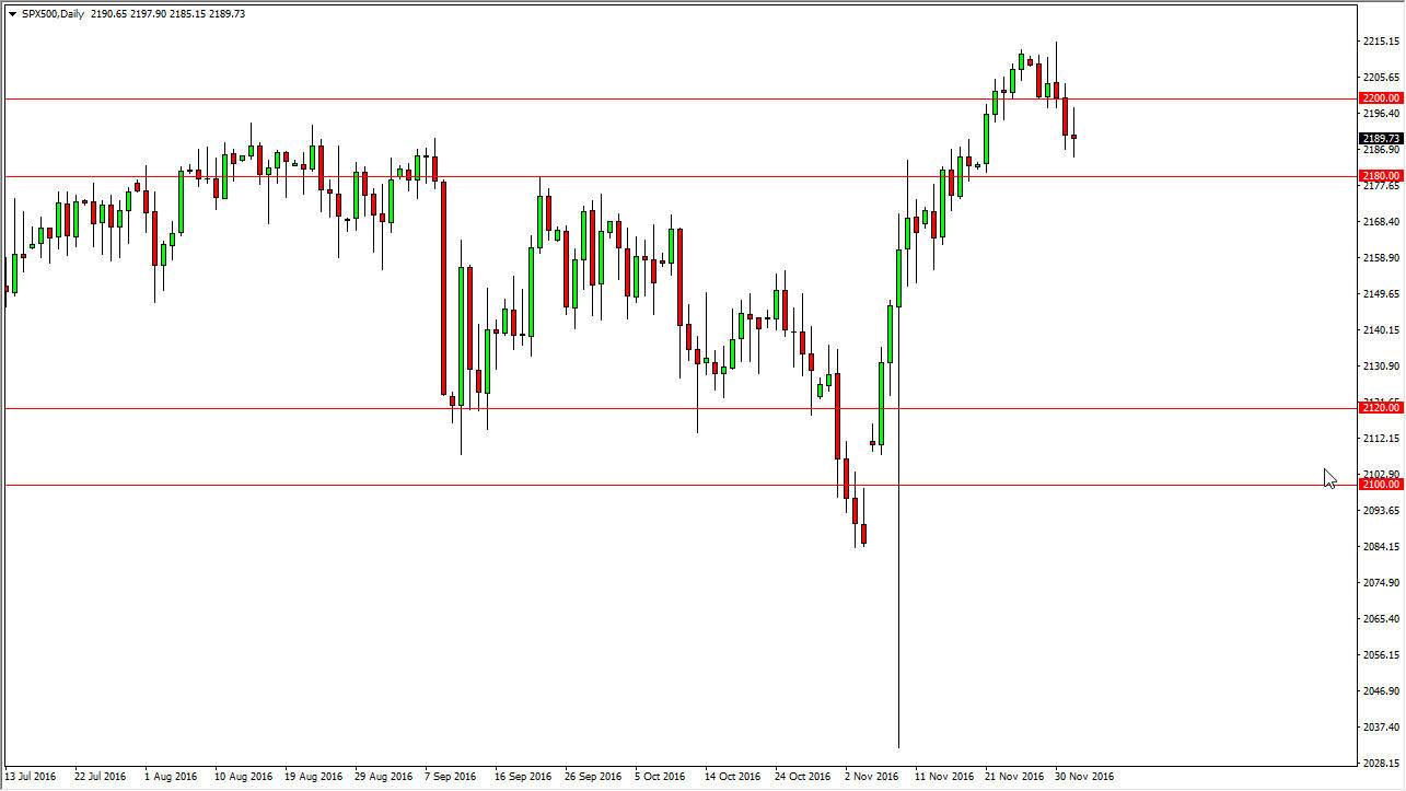 The S&P 500 had a back-and-forth type of session on Friday as the market digested the jobs numbers. With an addition of 178,000 jobs during the month of November, the announcement was essentially right in line. It makes sense that we formed a neutral candle, as there wasn’t really much to take from it. We are in the support area, so you would expect to see buyers get involved. I believe that the 2180 level will continue to offer support, so I am bullish of this market but I recognize we could chop around for a few. Given enough time, I believe that we eventually reach out to a fresh, new high. With this in mind, I have no interest in selling and even if we did break down below the 2180 handle, there is a lot of noise just below that could continue to aid the buyers.
