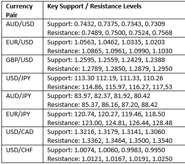 Key Support/Resistance Levels for Popular Pairs