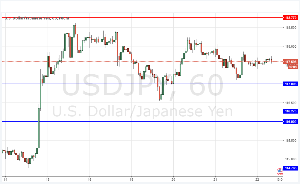 * Go long following a bullish price action reversal on the H1 time frame immediately upon the next touch of 117.00 or 116.28.