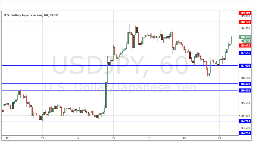 • Go long following a bullish price action reversal on the H1 time frame immediately upon the next touch of 117.52 or 117.00.