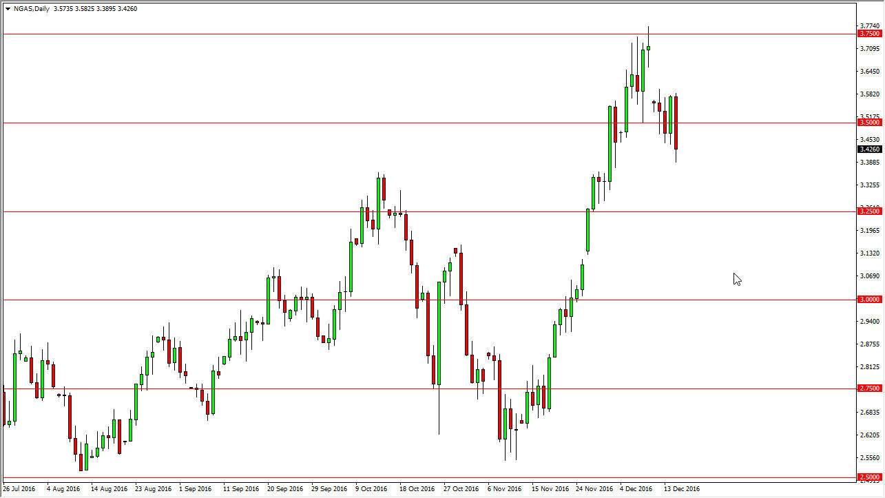 The natural gas markets fell during the day on Thursday, slicing below the previous consolidation. I think that the market looks likely to roll over, but at this point the market should find quite a bit of support just below. The $3.30 level below could be very supportive as it was previously resistive, and the $3.25 level below there would be even more supportive. A supportive candle below should be a buying opportunity as the market will continue to go to the upside.