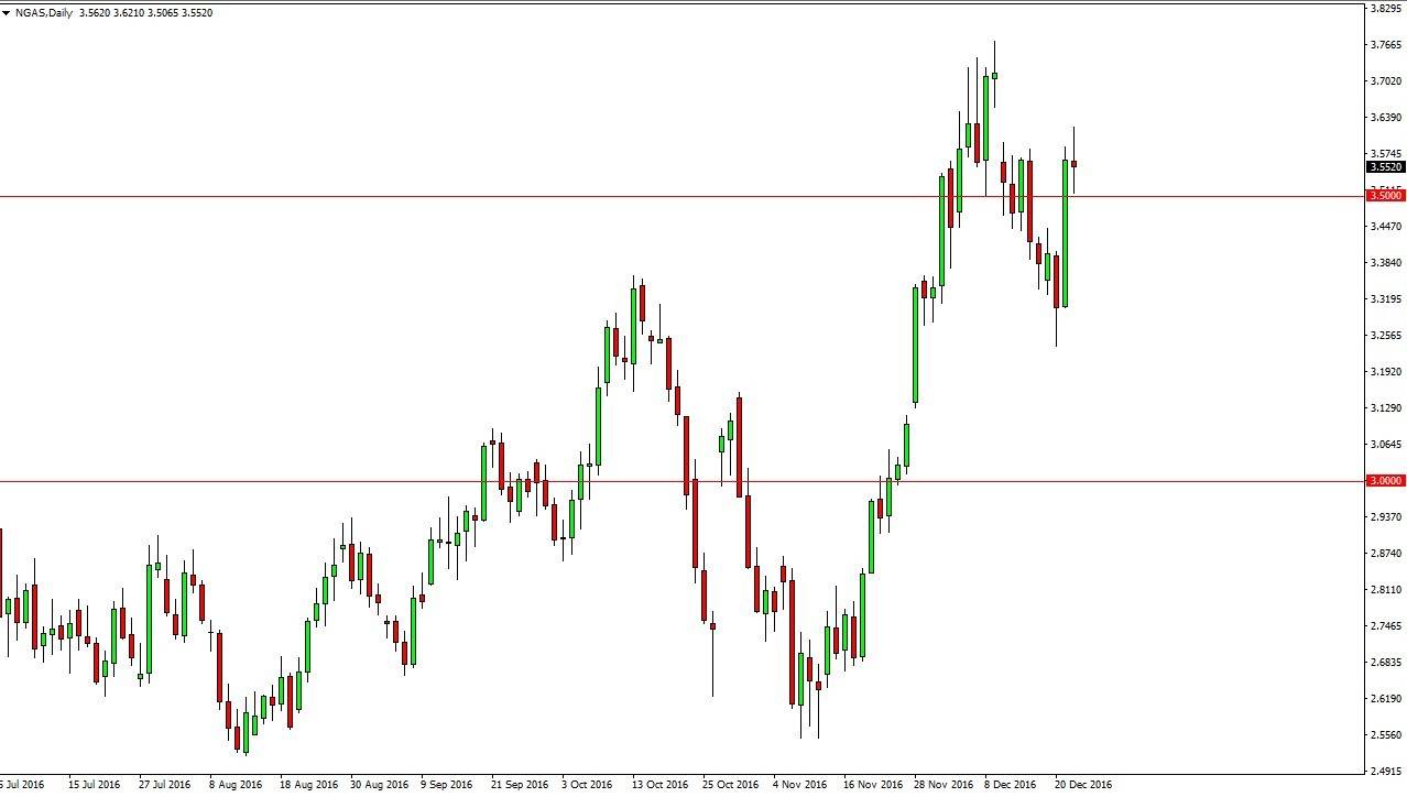 The natural gas markets went back and forth on Thursday, as we saw a support level at the 3.50 level, and a resistance barrier and of the $3.60 level. Ultimately, I feel that we need to fill the gap from a couple of weeks ago, meaning that the market will probably try to reach towards the $3.75 handle. There is a lot of noise in this general vicinity, and thus I think it will be very choppy and difficult. If we breakdown below the 3.50 level however, I feel that the market will probably drop back to the $3.30 level. The gap has not been filled, and that typically happen so I think that’s going to happen sooner rather than later. Eventually, I think the sellers come back though because of the negative gap, which typically means that you’re going to see more selling pressure. Eventually, the oversupply of natural gas becomes the focus yet again.
