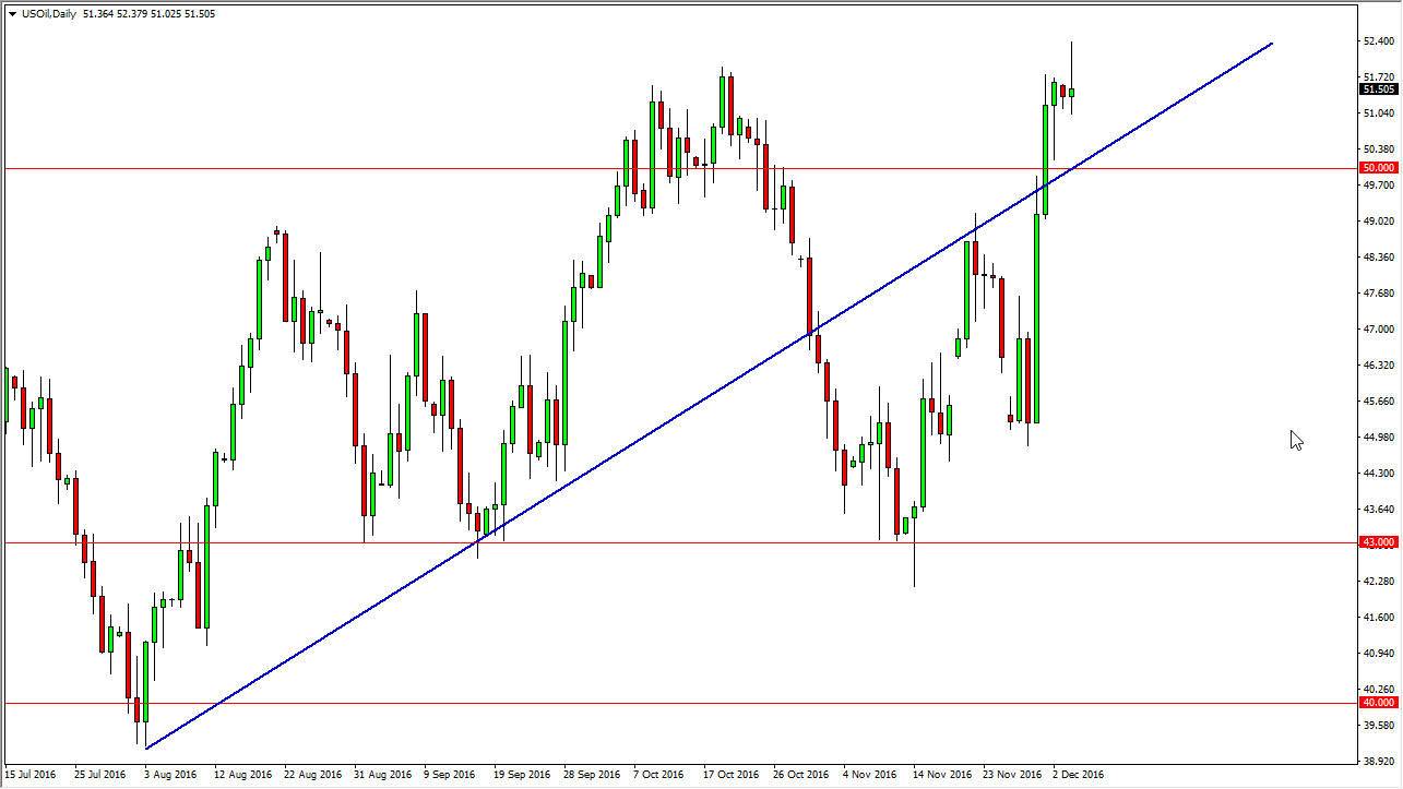 The WTI Crude Oil market rallied on Monday, testing the $52 region. This area offered enough resistance to turn things around and form a shooting star. This was preceded by a hammer though, so I think what we’re going to see is a consolidation in this area. The $50 level below should continue to offer a bit of a floor but if we can break down below there, the market will then break down significantly. Until then, I believe that we still have upward potential and a break above the top of the shooting star for the Monday session would be reason enough to expect the WTI market to reach towards the $55 handle.