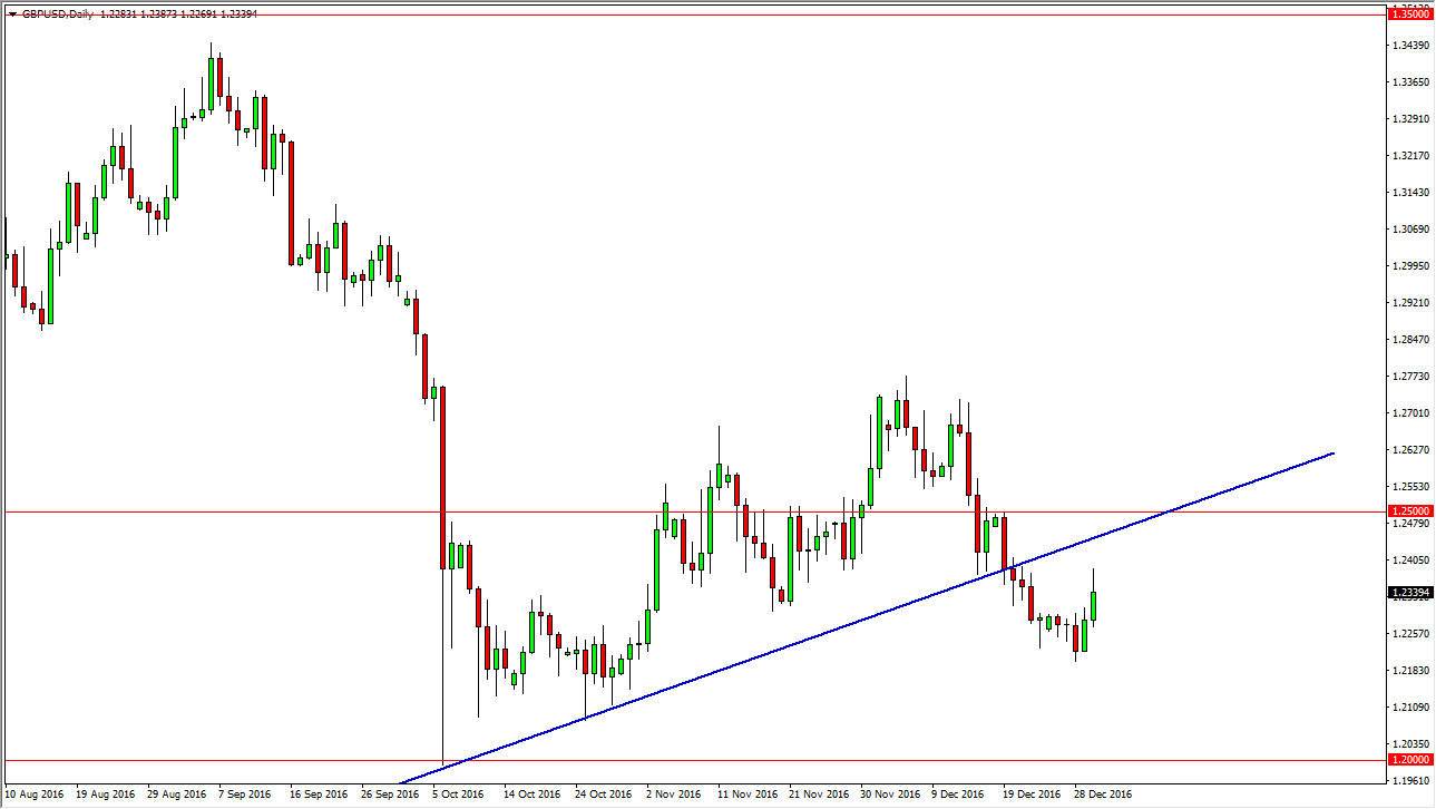 The British pound rallied on Friday, but remains well below the resistance above, as the previous uptrend line should now offer quite a bit of selling pressure. On top of that, the 1.25 level above should be resistance also, so having said that I believe that selling on signs of exhaustion it will be the best way to go forward. I think that we will eventually reach down to the 1.21 handle underneath, and then of course the 1.20 level below that. I believe in the bearish story overall, but I recognize that there is a lot of choppiness. Ultimately, short-term trades will probably be the best way to approach the market longer-term, and as a result I think that you will get several opportunities all the way down to the 1.20 level.
